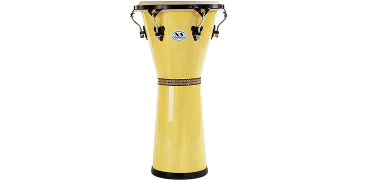 El Djembe MXD 810 de XS Percusion esta construido con madera natural en color amarillo, con aros y herrajes cromados y parche de piel.