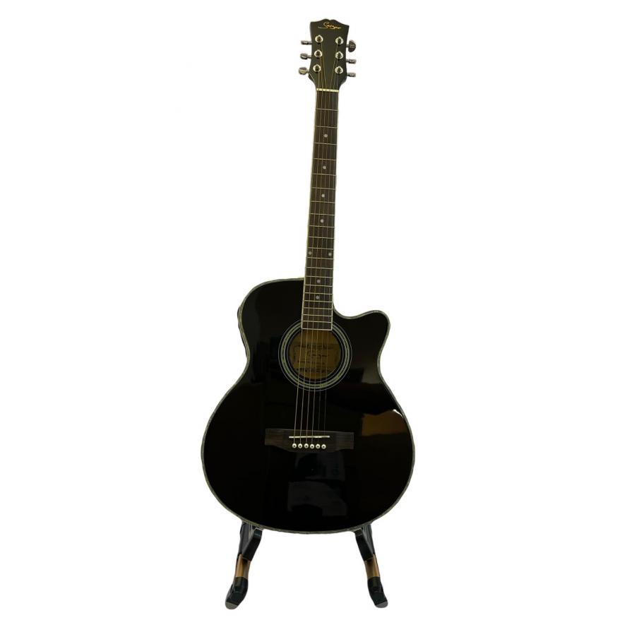 Guitarra acústica con cutaway florentino, tapa de picea alemana maciza, aros y fondo de arce figurado y mástil de caoba. acabado en color negro.