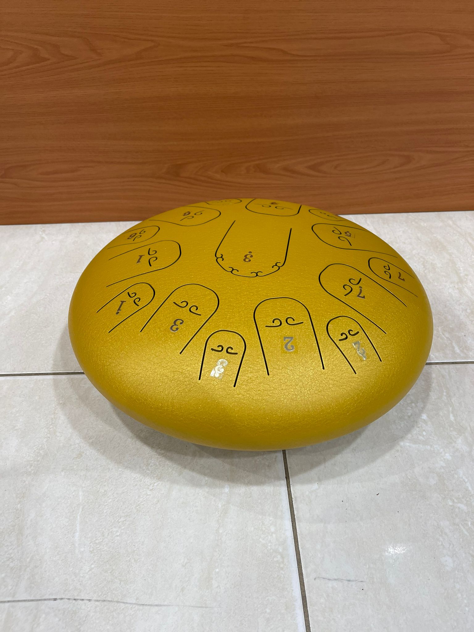 Lengua de Fuego. Es un instrumento diatónico de 14″ construido en acero de carbono. En siete colores diferentes.